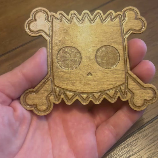 Stained basswood fridge magnet of Bart's daredevil shirt from the Simpsons.