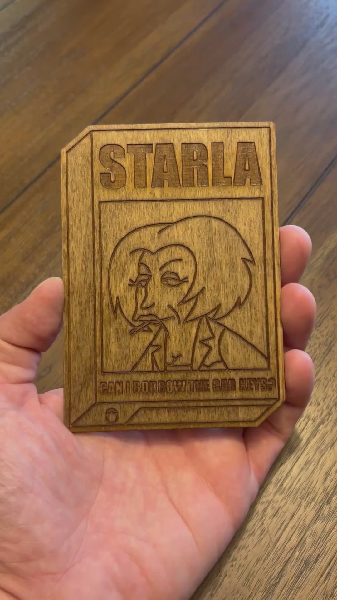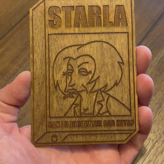 Stained basswood fridge magnet of Starla's demo tape from the Simpsons