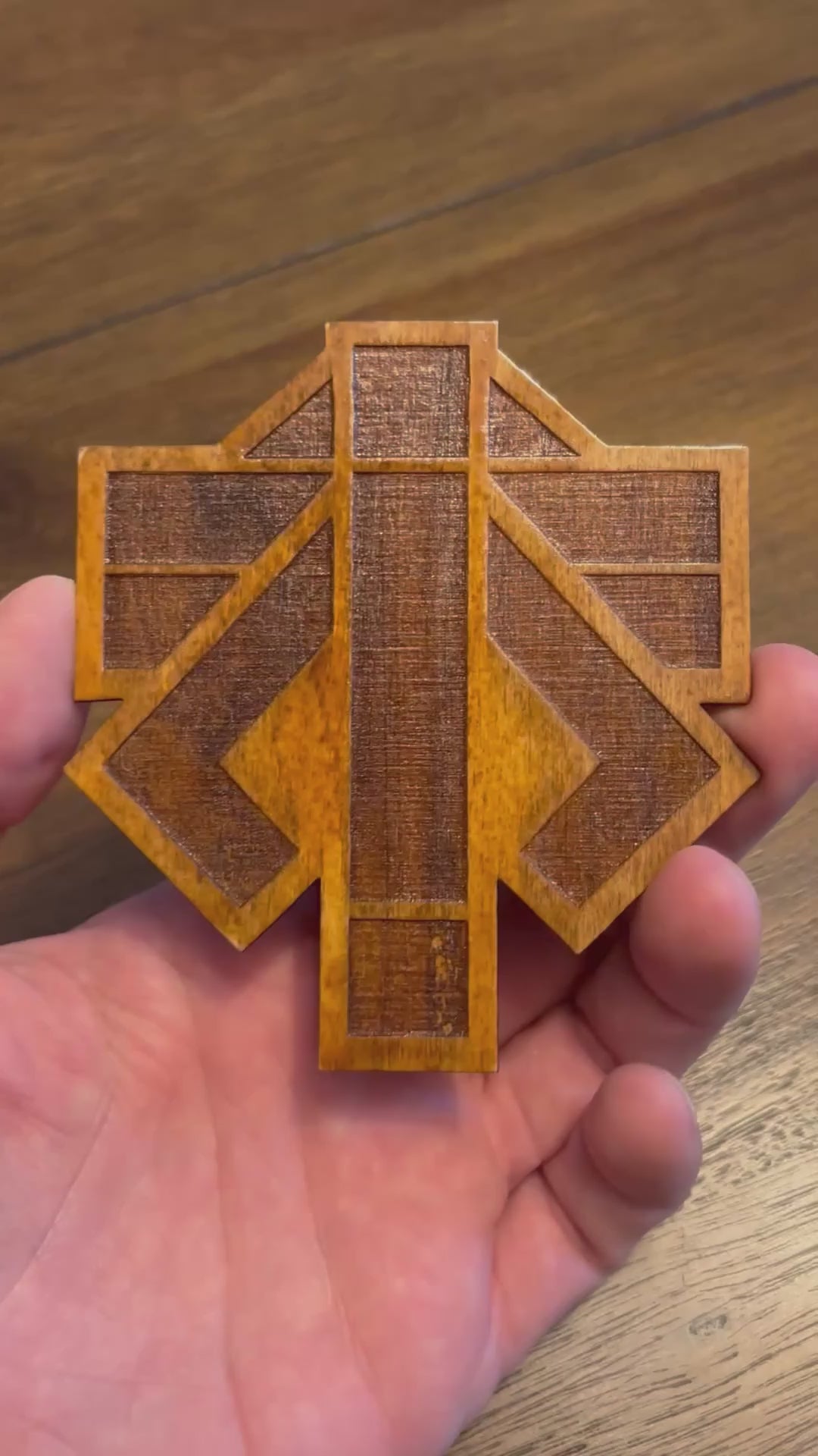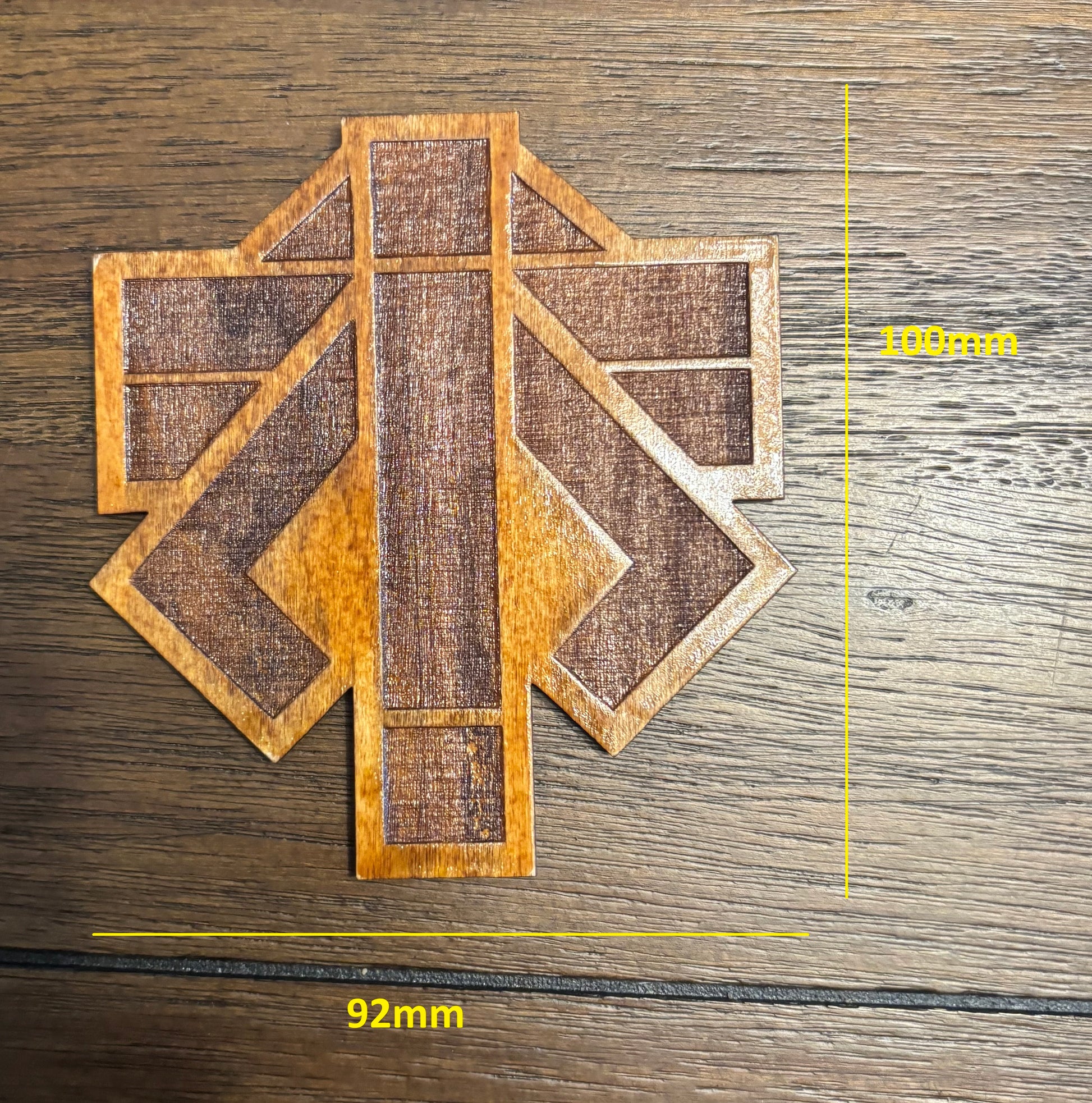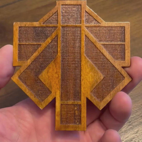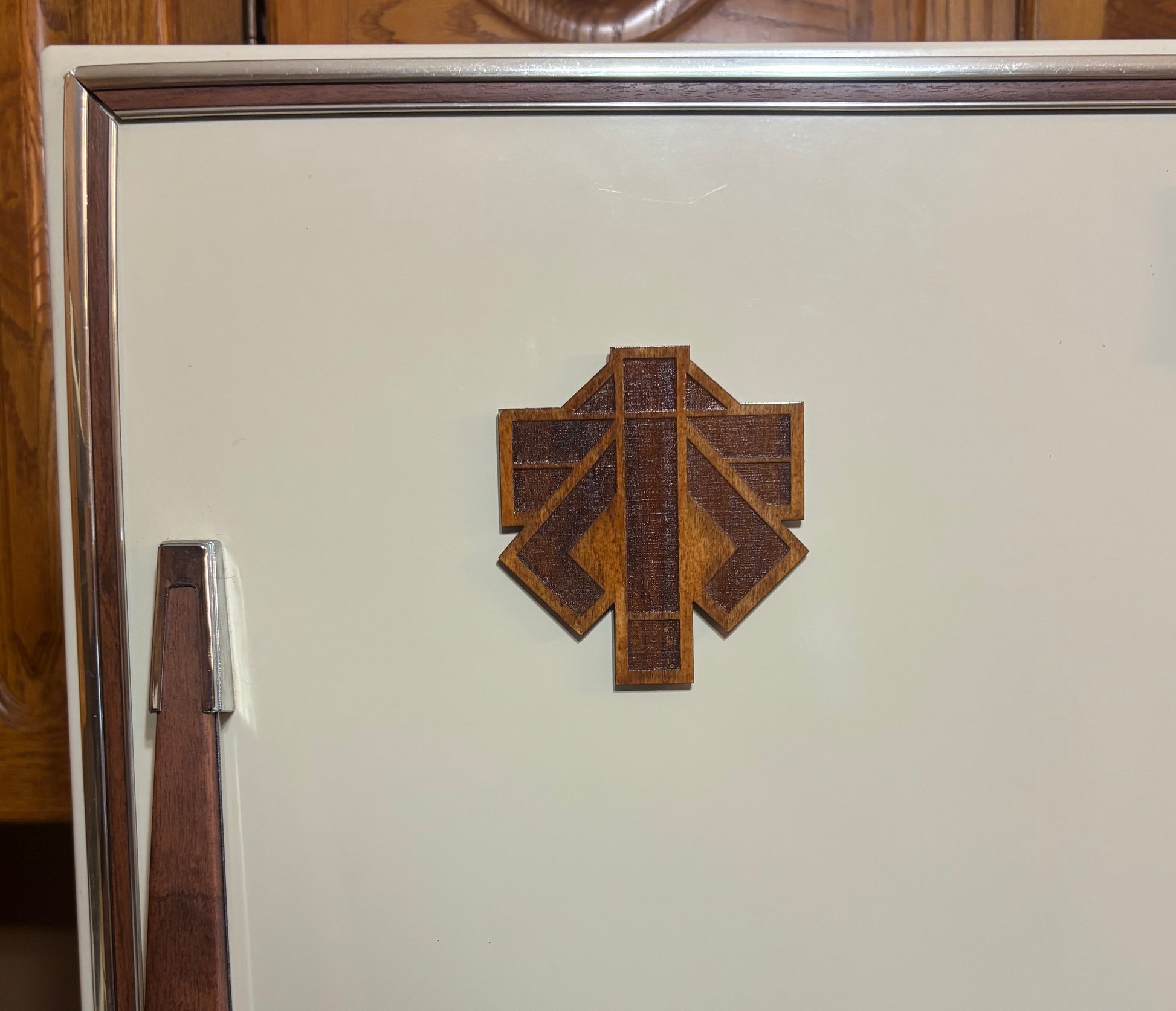 Stained basswood fridge magnet of the Advent logo from the X-COM video games