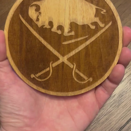 Stained basswood fridge magnet of the Buffalo Sabres hockey team logo