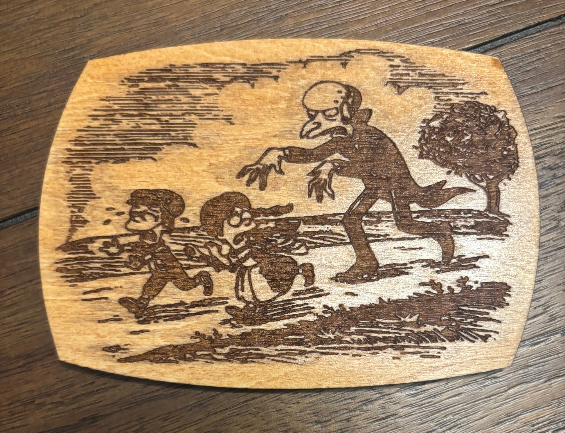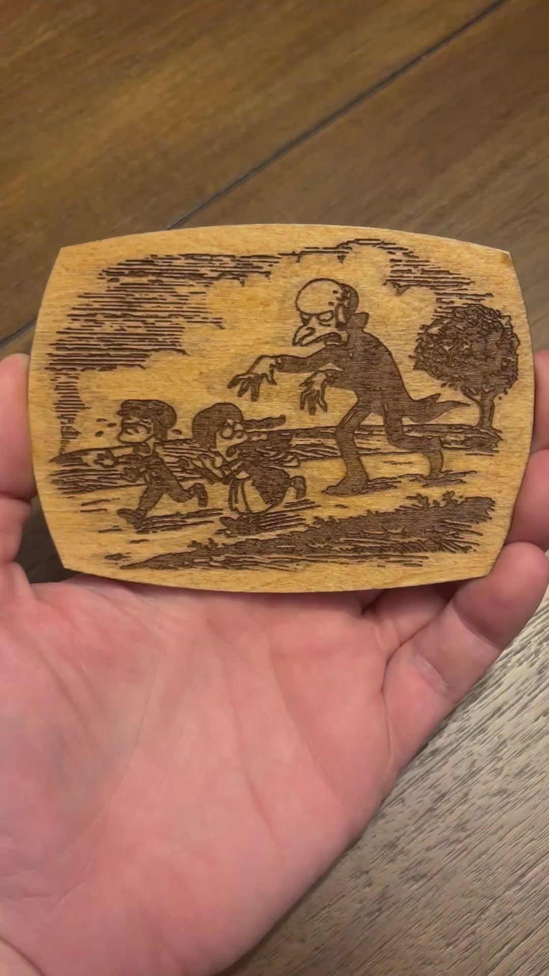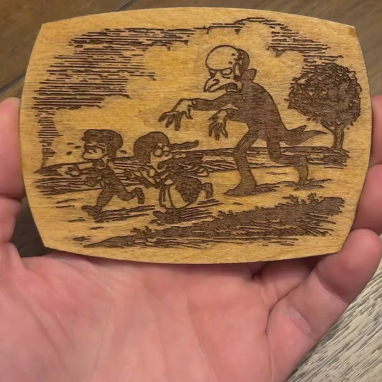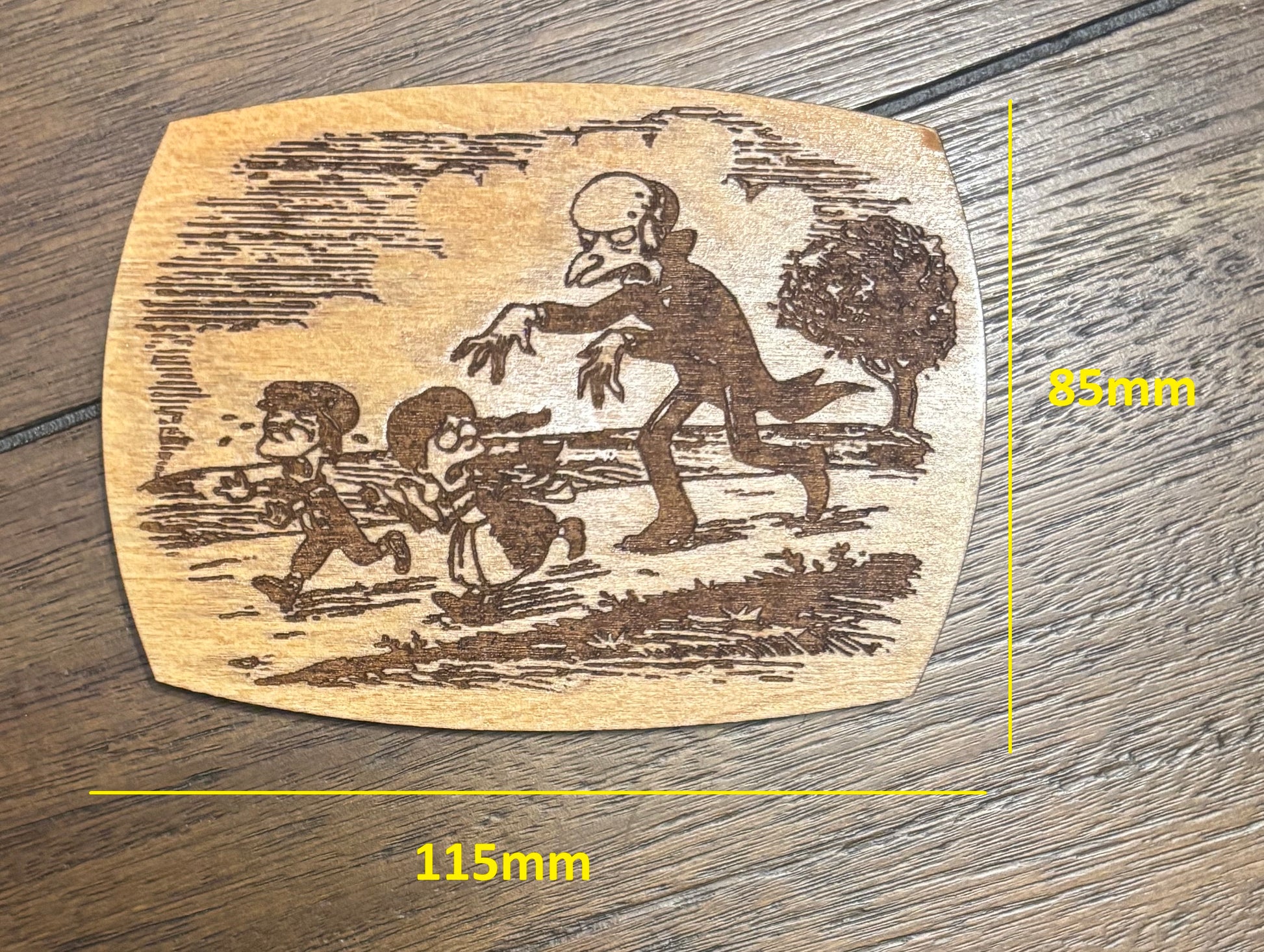 Stained basswood fridge magnet of Mr Burns as a vampire from the Simpsons