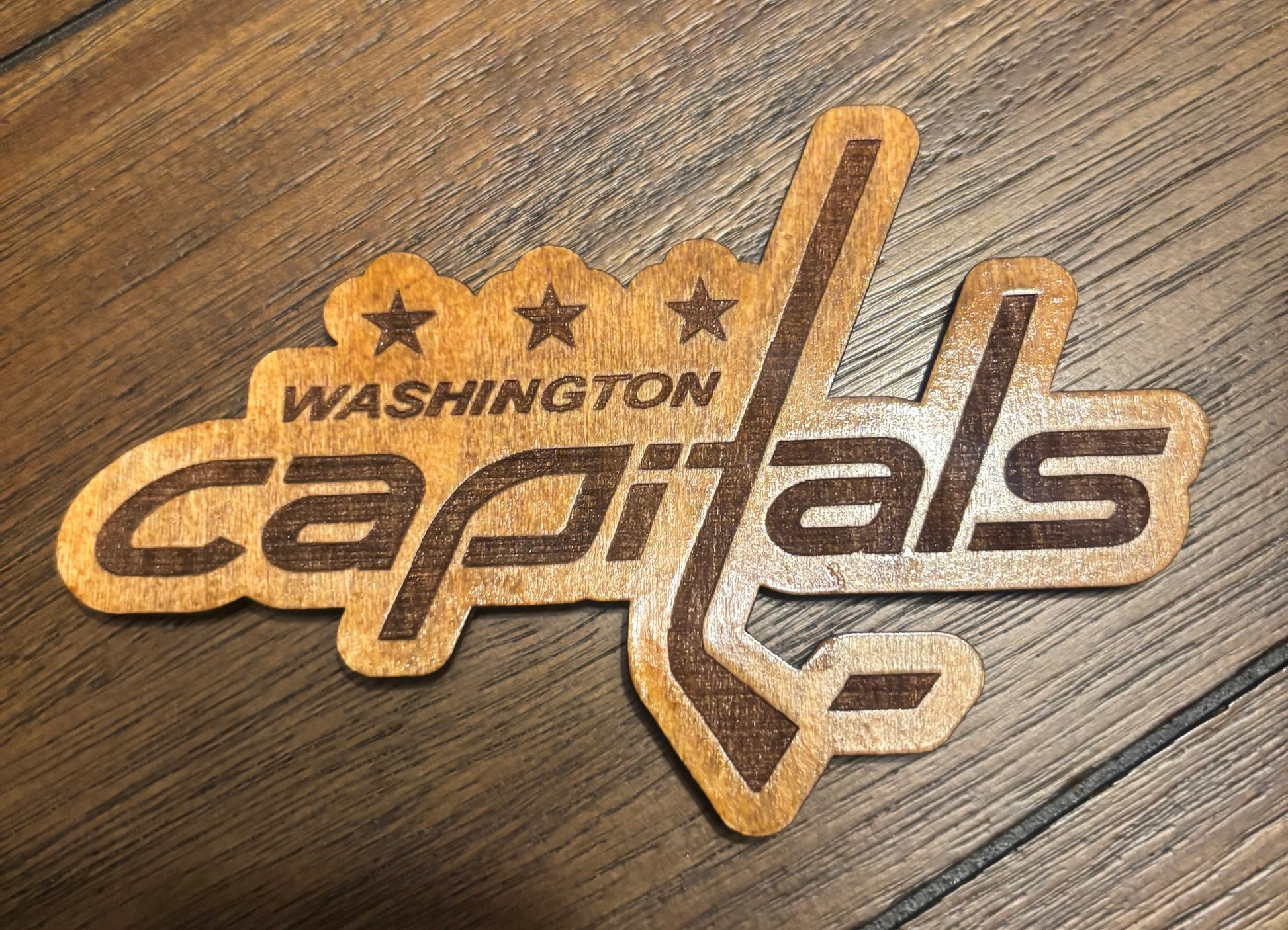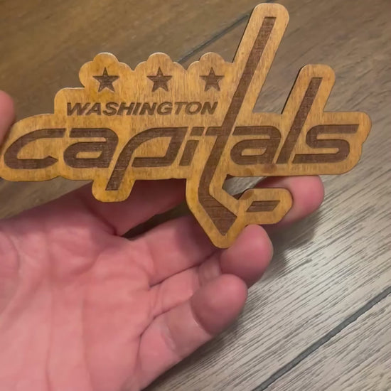 Stained basswood fridge magnet of the Washington Capitals hockey team logo